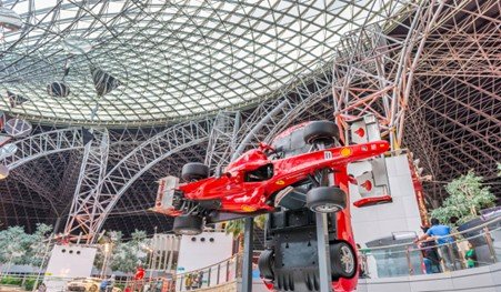 Arrive at Ferrari World: Step into the world’s first Ferrari-branded indoor theme park and take in its breathtaking design.
