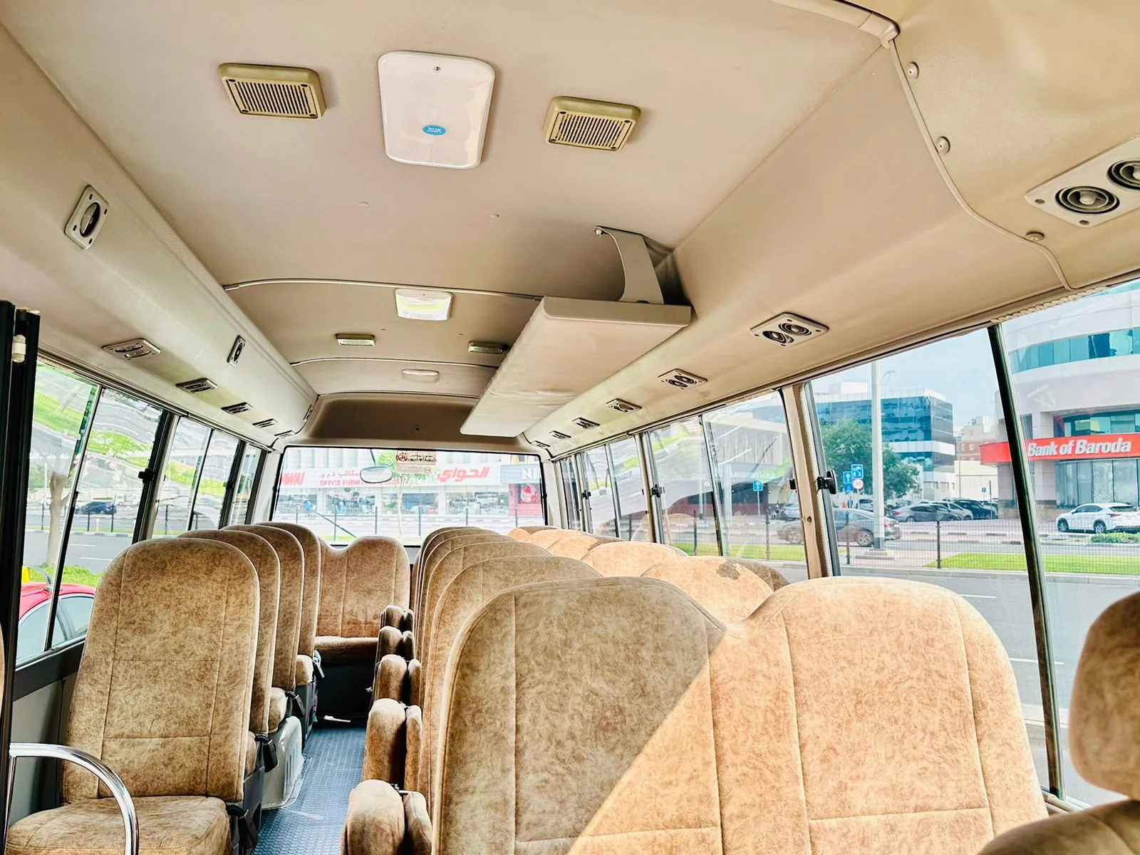 - Dubai Airport Transfer (13-16 People): For airport transfers, we will provide you with a 22 seater coaster bus in Dubai with a driver along with luggage.